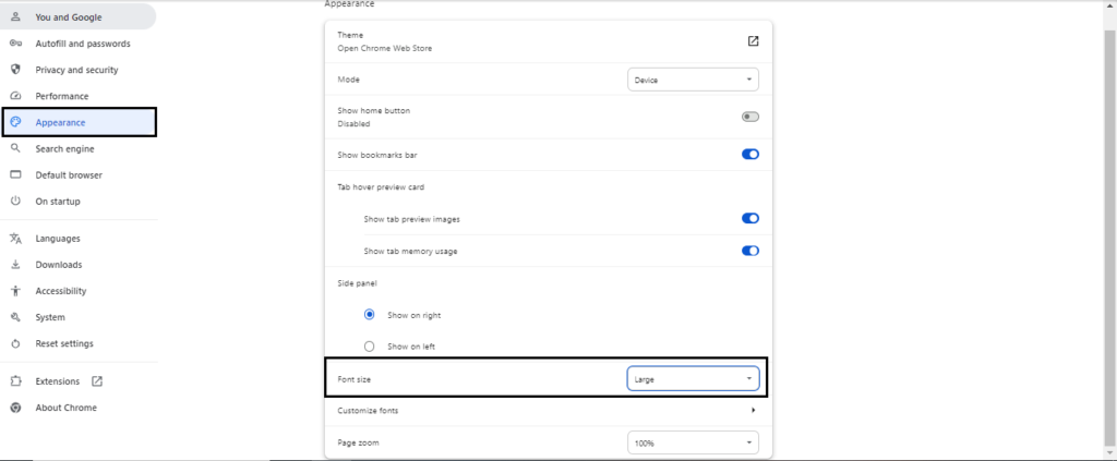3. Click on Appearance